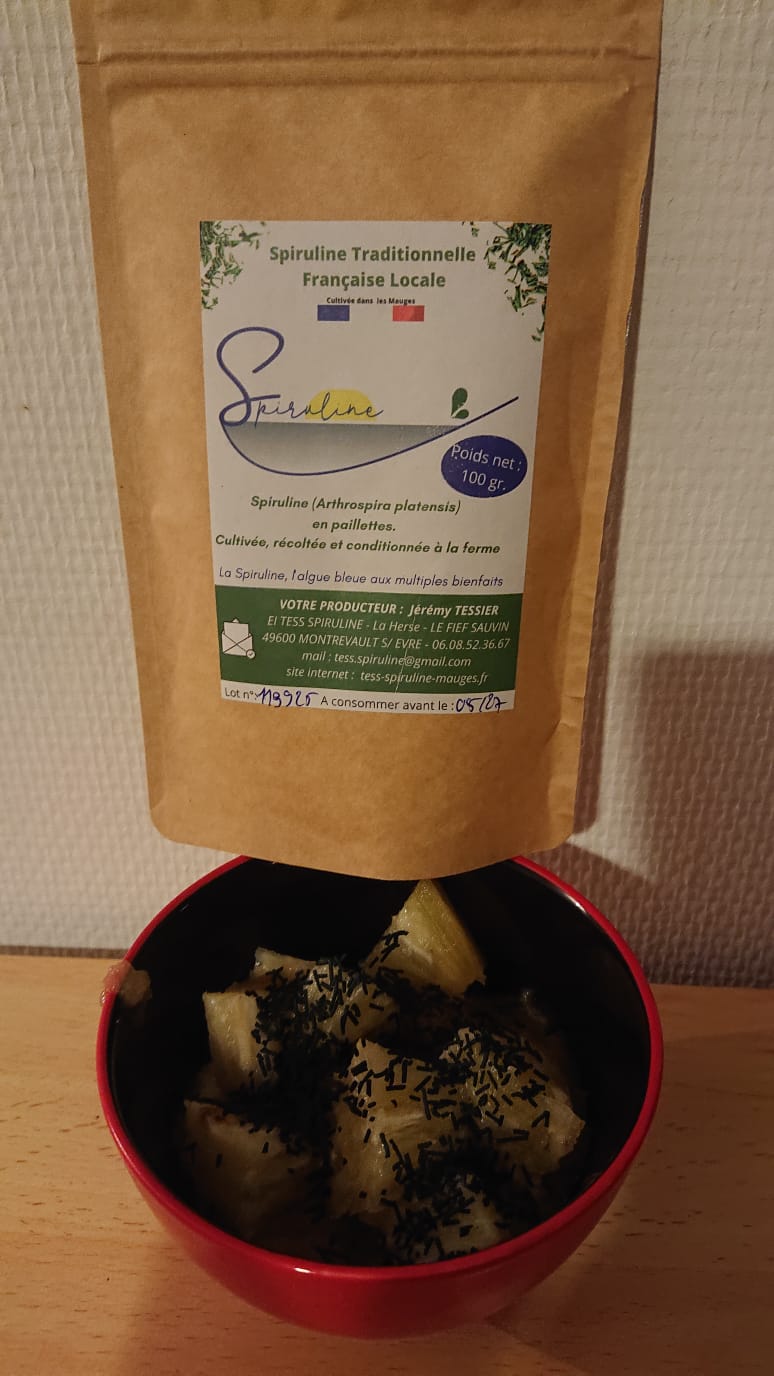 Les 100g à 15EUR à partir de 300g d’achat voir article Spiruline en brindilles à partir de 300g